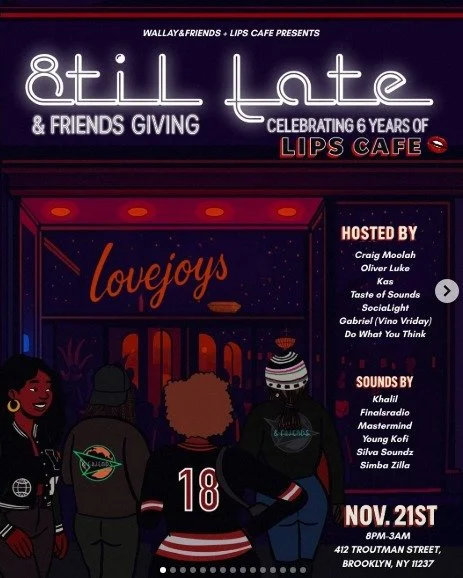 8 Til Late &Friends Friday, November 21, 2025 8:00 PM Saturday, November 22, 2025 2:45 AM Google Calendar ICS Time: 8:00 pmLocation: Lovejoy's, BrooklynInfo: TICKETS