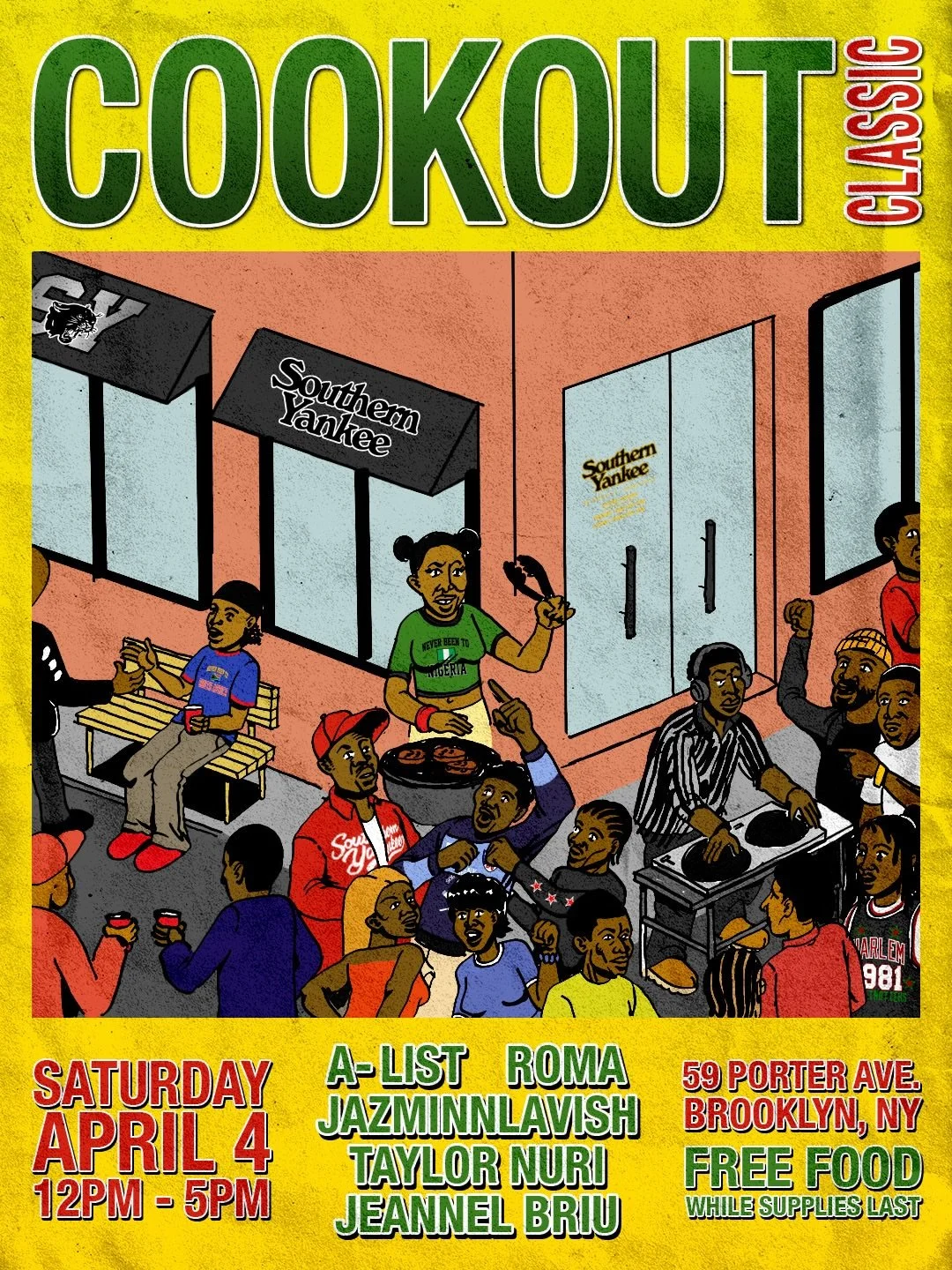 Back to All Events Cookout Classic Saturday, April 4, 2026 12:00 PM 5:00 PM Google Calendar ICS Time: 12:00 pmLocation: Southern Yankee Store, BrooklynInfo: TICKETS