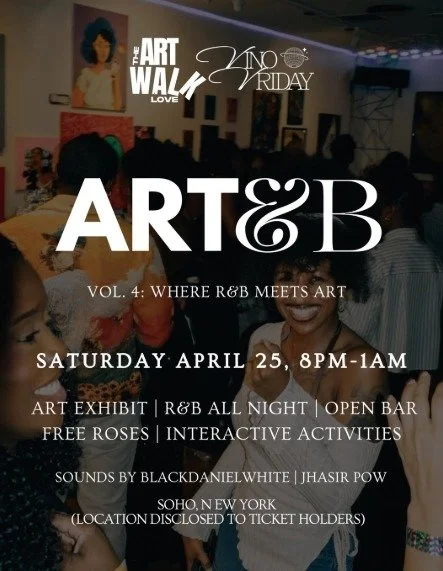 Back to All Events Art&B Vol 4: Where R&b Meets Art Saturday, April 25, 2026 8:00 PM Sunday, April 26, 2026 1:00 AM Google Calendar ICS Time: 8:00 pmLocation: SoHo, ManhattanInfo: TICKETS