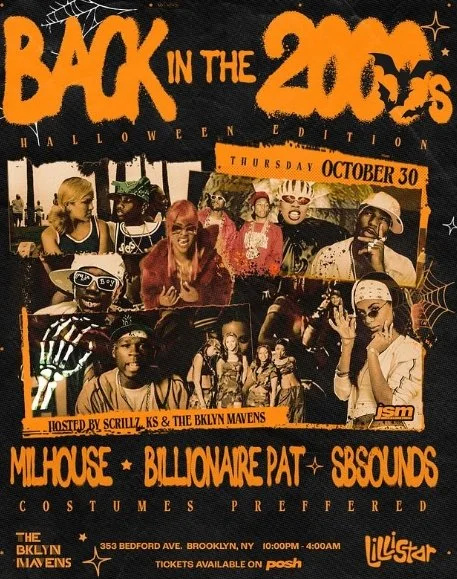 Back In The 2000's: Halloween Edition Friday, October 31, 2025 10:00 PM Saturday, November 1, 2025 3:30 AM Google Calendar ICS Time: 10:00 pmLocation: Lillistar, BrooklynInfo: TICKETS