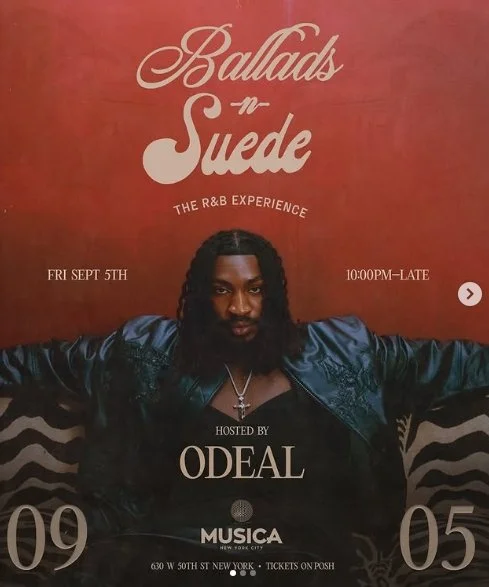 Back to All Events Ballads ‘N Suede Friday, September 5, 2025 10:00 PM Saturday, September 6, 2025 4:00 AM Google Calendar ICS Time: 10:00 pmLocation: Musica, ManhattanInfo: TICKETS