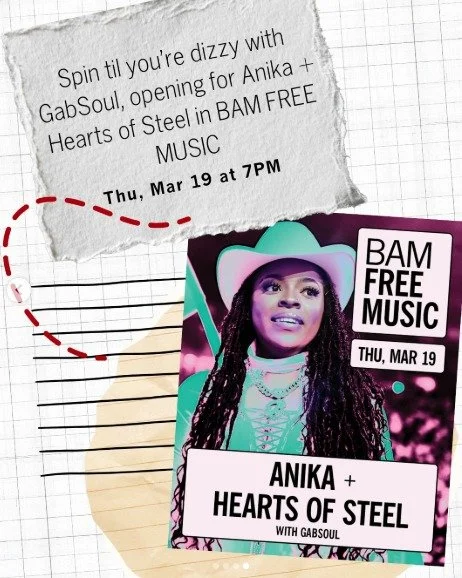 Bam Free Music Thursday, March 19, 2026 7:00 PM Friday, March 20, 2026 12:00 AM Google Calendar ICS Time: 7:00 pmLocation: Bam Cafe, BrooklynInfo: TICKETS