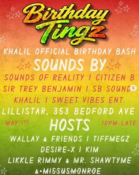 Back to All Events Birthday Tingz: Khalil's Birthday Bash Friday, May 1, 2026 10:00 PM Saturday, May 2, 2026 4:00 AM Google Calendar ICS Time: 10:00 pmLocation: Lillistar, BrooklynInfo: TICKETS