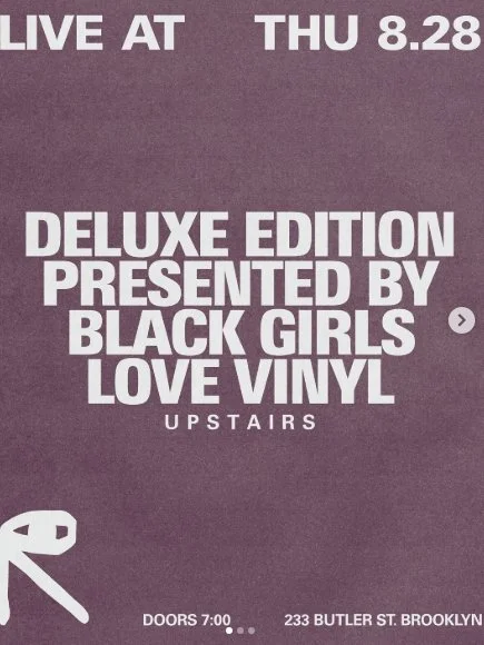 Back to All Events Black Girls Love Vinyl [UPSTAIRS] Wednesday, August 27, 2025 8:00 PM Thursday, August 28, 2025 2:00 AM Google Calendar ICS Time: 8:00 pmLocation: Public Records, Brooklyn Info: TICKETS