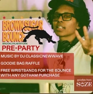 Brown Sugar Bounce Pre-Party Friday, February 6, 2026 11:00 PM Saturday, February 7, 2026 4:00 AM Google Calendar ICS Time: 11:00 pmLocation: 296 Kent Ave, BrooklynInfo: TICKETS