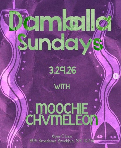 Damballa Sundays Sunday, March 29, 2026 6:00 PM Monday, March 30, 2026 2:00 AM Google Calendar ICS Time: 6:00 pmLocation: Damballa, BrooklynInfo: TICKETS