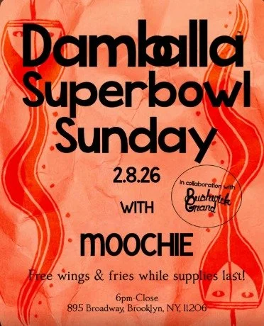 Damballa Super Bowl Sundays Sunday, February 8, 2026 6:00 PM Monday, February 9, 2026 2:00 AM Google Calendar ICS Time: 6:00 pmLocation: Damballa, BrooklynInfo: TICKETS