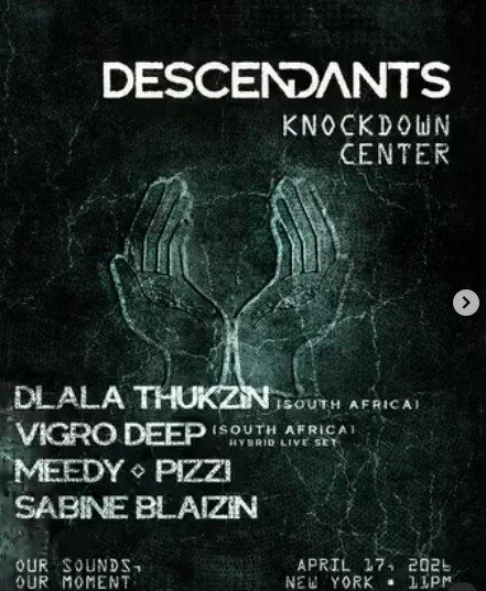 Back to All Events DESCENDANTS Friday, April 17, 2026 11:00 PM Saturday, April 18, 2026 4:00 AM Google Calendar ICS Time: 10:00 pmLocation: Knockdown Center, QueensInfo: TICKETS