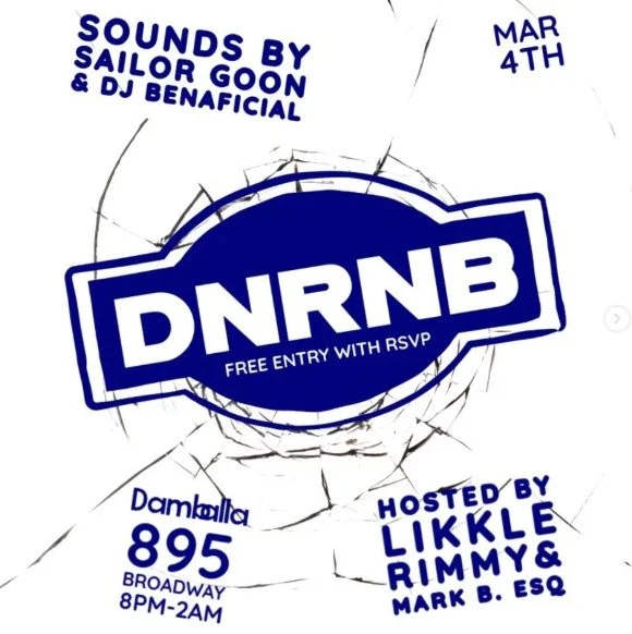 DNRNB Wednesday, March 4, 2026 8:00 PM Thursday, March 5, 2026 2:00 AM Google Calendar ICS Time: 8:00 pmLocation: Damballa, BrooklynInfo: TICKETS