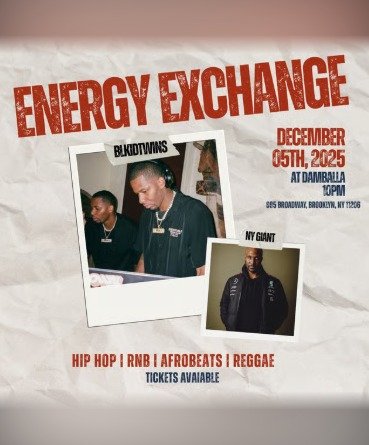 Energy Exchange Friday, December 5, 2025 10:00 PM Saturday, December 6, 2025 4:00 AM Google Calendar ICS Time: 10:00 pmLocation: Damballa, Brooklyn Info: TICKETS