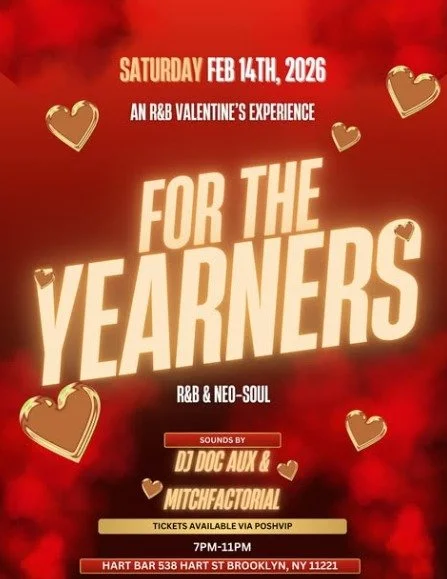 For The Yearners Saturday, February 14, 2026 7:00 PM 11:00 PM Google Calendar ICS Time: 7:00 pmLocation: Hart Bar, BrooklynInfo: TICKETS