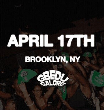 Gbedu Galore Friday, April 17, 2026 10:00 PM Saturday, April 18, 2026 4:00 AM Google Calendar ICS Time: 10:00 pmLocation: The Ivory On Park, BrooklynInfo: TICKETS