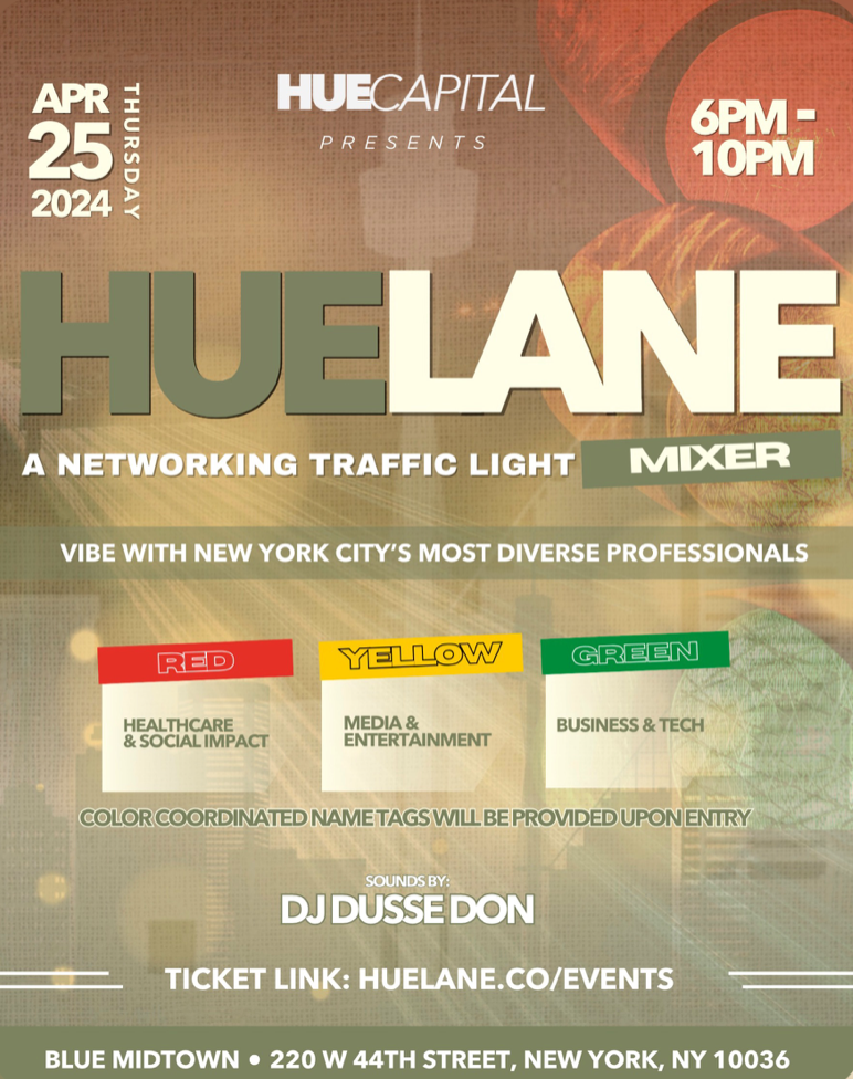 Hue Lane Networking Mixer Friday, April 26, 2024 6:00 PM 10:00 PM Google Calendar ICS Time: 6pmLocation: Blue Midtown, ManhattanInfo:Ticket LinkDiscount code blkl50