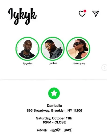 IYKYK Saturday, October 11, 2025 10:00 PM Sunday, October 12, 2025 3:00 AM Google Calendar ICS Time: 10:00 pmLocation: Damballa, BrooklynInfo: TICKETS