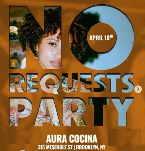 No Requests Party Friday, April 10, 2026 11:00 PM Saturday, April 11, 2026 4:00 AM Google Calendar ICS Time: 11:00 pmLocation: Aura Cocina, BrooklynInfo: TICKETS