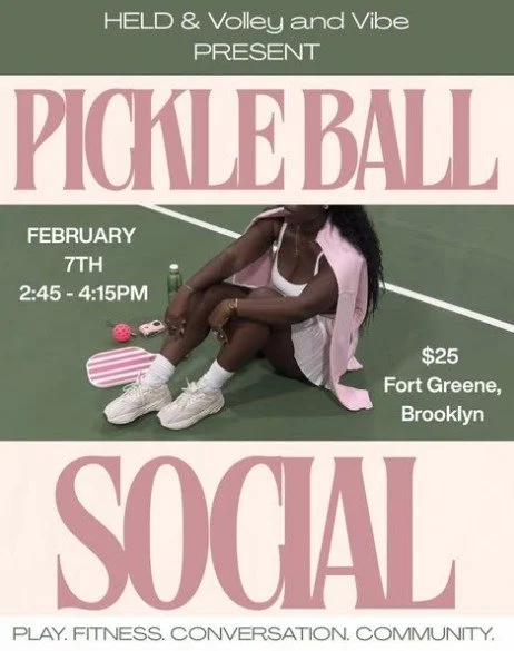 HELD x Volley & Vibe Pickleball Social Saturday, February 7, 2026 2:45 PM 4:15 PM Google Calendar ICS Time: 2:45 pmLocation: PKLYN Pickleball Club, BrooklynInfo: TICKETS