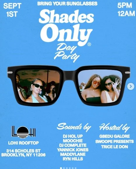 Shades Only Monday, September 1, 2025 5:00 PM Tuesday, September 2, 2025 12:00 AM Google Calendar ICS Time: 5:00 pmLocation: LoHi Rooftop, BKInfo: TICKETS