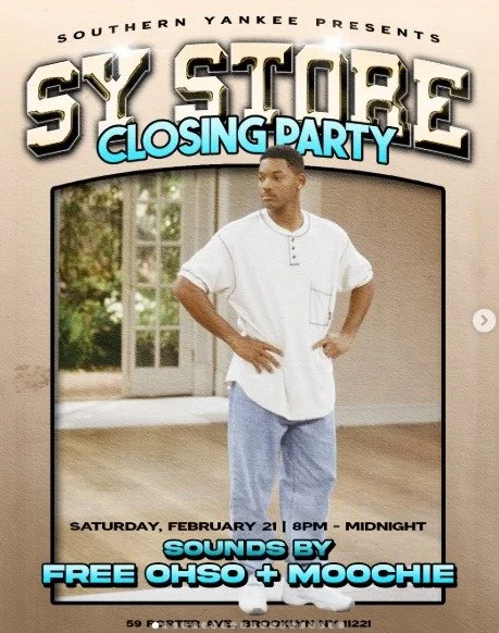 Back to All Events SY Store - Closing Party Saturday, February 21, 2026 8:00 PM Sunday, February 22, 2026 12:00 AM Google Calendar ICS Time: 8:00 pmLocation: 59 Porter Ave, Brooklyn Info: TICKETS