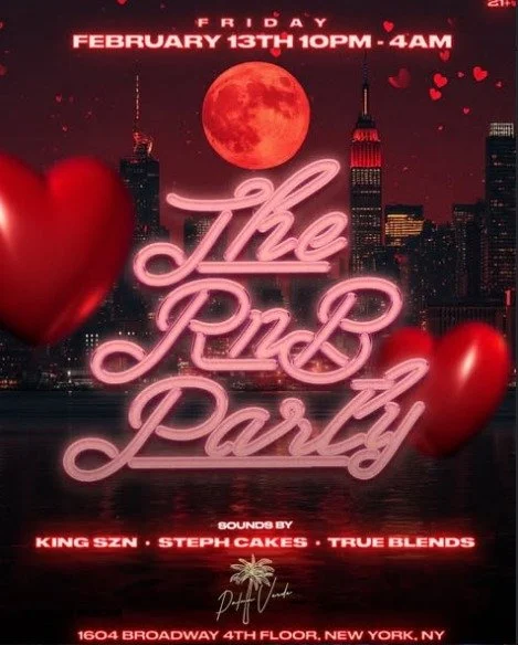 The RnB Party Friday, February 13, 2026 10:00 PM Saturday, February 14, 2026 4:00 AM Google Calendar ICS Time: 10:00 pmLocation: Palma Verde, ManhattanInfo: TICKETS