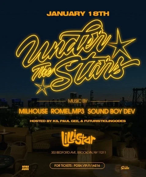 Under The Stars Saturday, January 18, 2025 10:00 PM Sunday, January 19, 2025 3:30 AM Google Calendar ICS Time: 10:00 pmLocation: Lillistar, BrooklynInfo: TICKETS