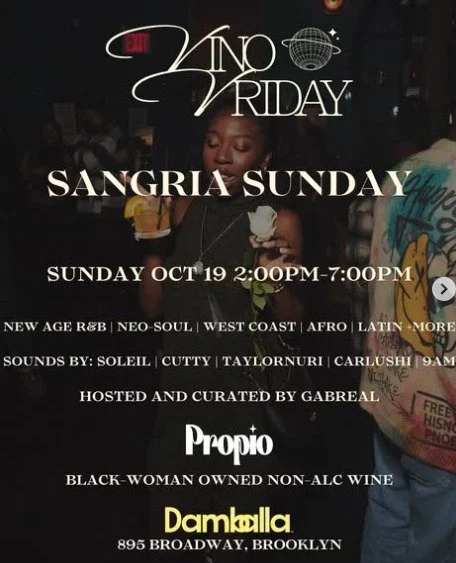 Vino Vriday: Sangria Sunday Sunday, October 19, 2025 2:00 PM 7:00 PM Google Calendar ICS Time: 2:00 pmLocation: Damballa, BrooklynInfo: TICKETS
